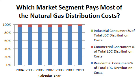 The U.S. Department of Energy's, Energy Information Agency (EIA) shows there are about 2.6 million residential natural gas (NG) customers, about 230,000 commercial NG customers, and about 5,000 industrial customers in Pennsylvania; yet the residential NG consumers in Pennsylvania are paying over 96% of the distribution cost markups over the citygate prices.